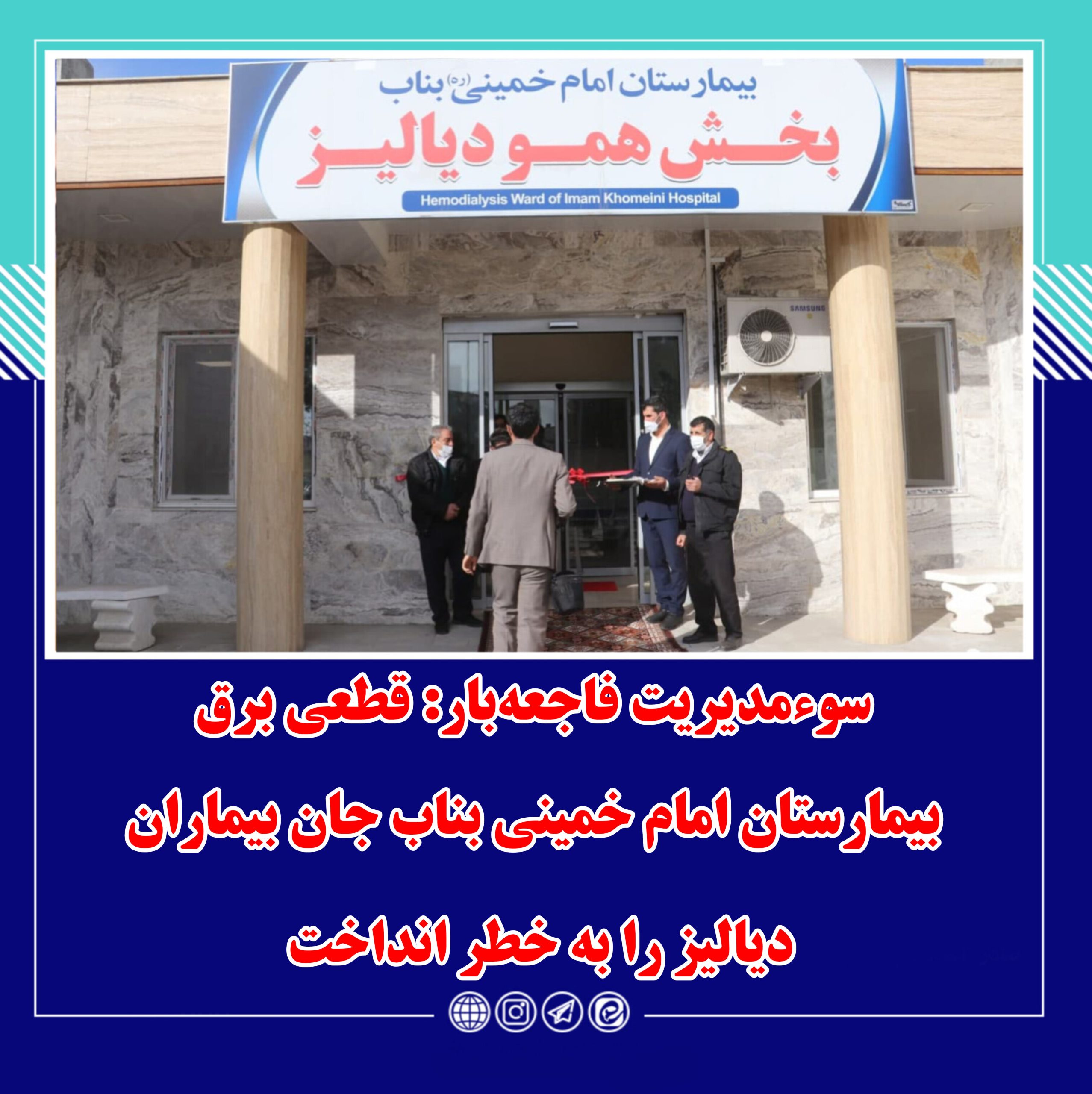 سلام بر رسانه نسام، روز چهارشنبه بیمارستان امام خمینی بناب شاهد قطعی طولانی برق بود که متاسفانه سیستم ژنراتور نیز از مدار خارج بود و بیست دقیقه طول کشید تا برق وصل شود که مشکلات جدی برای بیماران بخش دیالیز و مراقبتهای ویژه ایجاد کرد. بیماران دیالیزی که زندگیشان به دستگاههای برقی وابسته است، با خطر شوک شدید و اختلال در درمان مواجه شدند و لحظات پرتنش و استرسی را تجربه کردند.