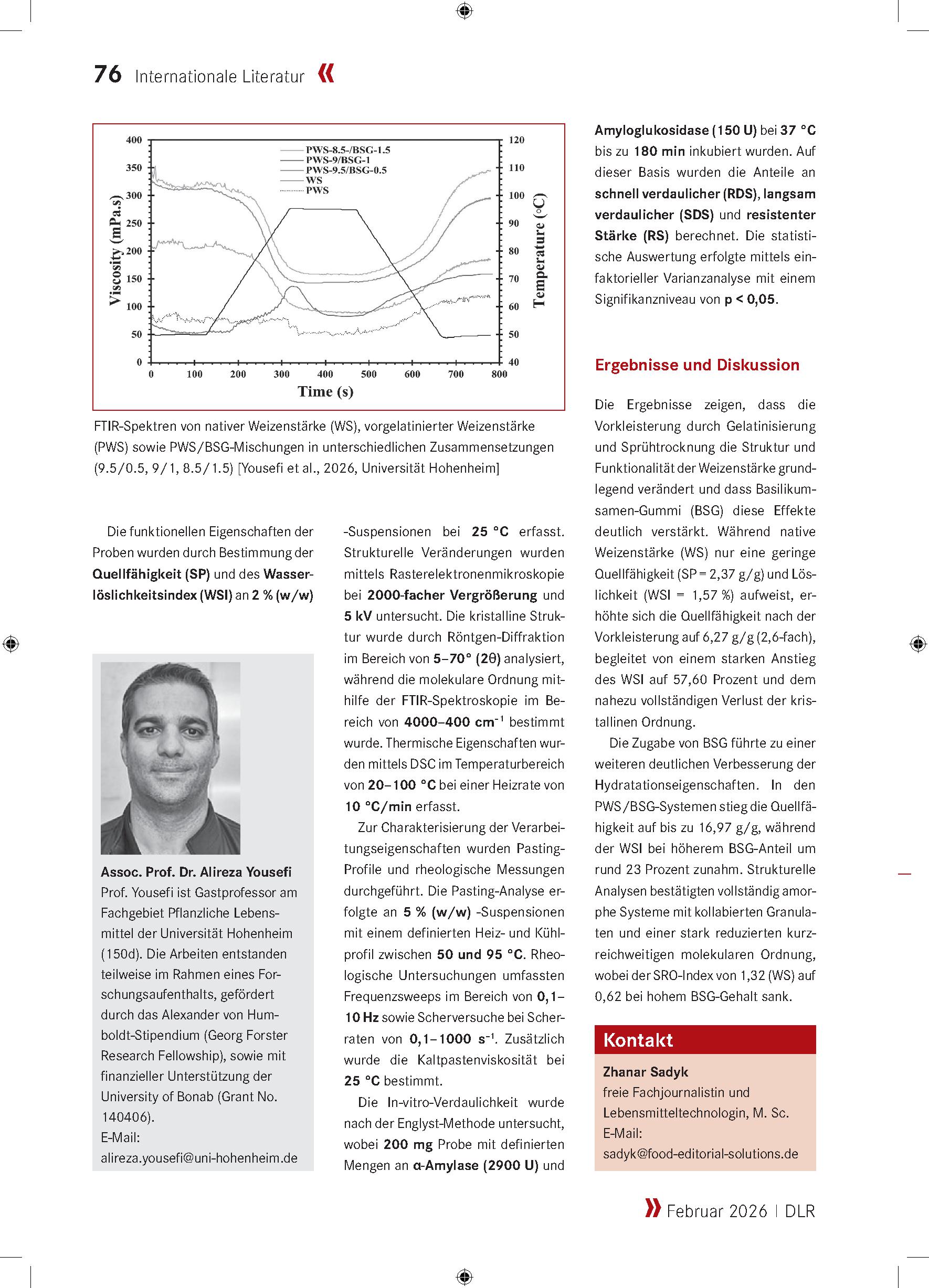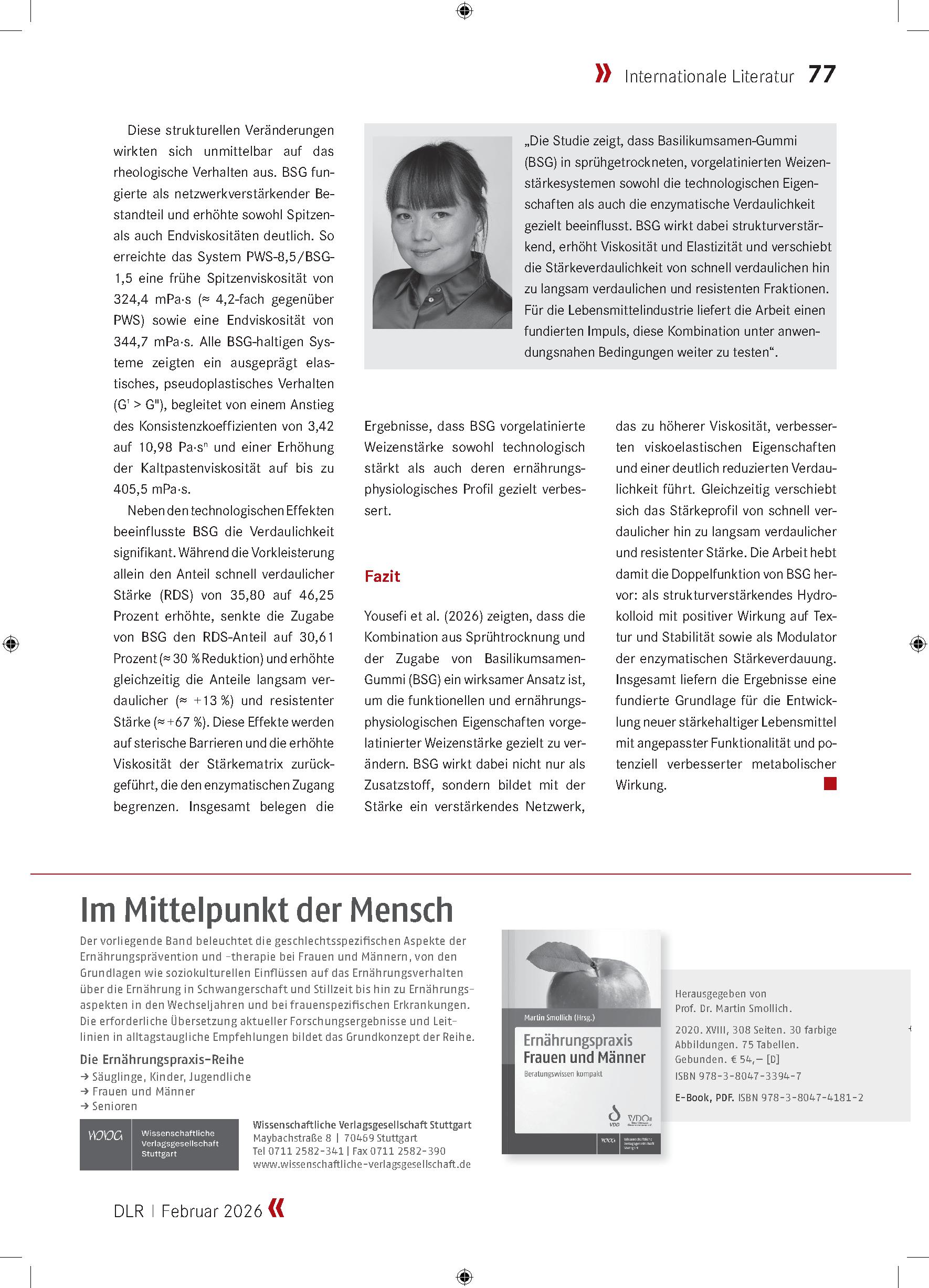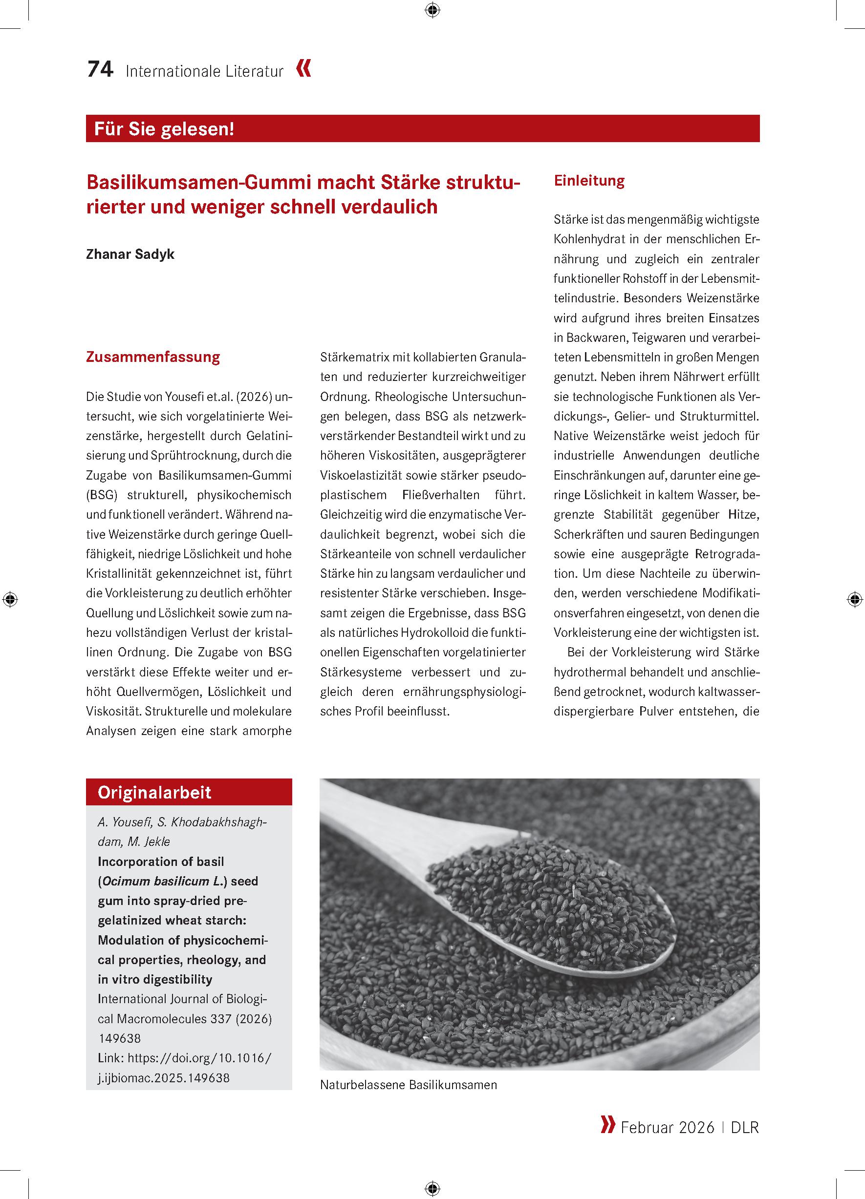 به گزارش آژانس خبری نسام، سرویس آموزش عالی، انجمن DLR با هدف معرفی دستاوردهای نوآورانه در علوم و صنایع غذایی، پژوهش دکتر یوسفی با عنوان «صمغ دانه ریحان باعث میشود نشاسته ساختار یافتهتر و هضم آن دشوارتر شود» را بهعنوان طرحی کاربردی و آیندهساز انتخاب کرده است. این پژوهش در شماره ماه فوریه ۲۰۲۶ نشریه معتبر آنلاین BEHR’S منتشر شده است.